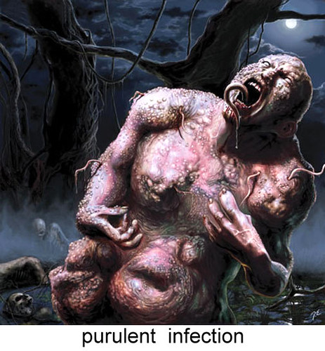 v.使化膿、使潰爛 [to form pus(膿); generate purulent(化膿的) matter]