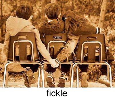 看到正妹就心癢(tickle)難耐,喜歡的對象換了又換,真是易變阿(fickle)