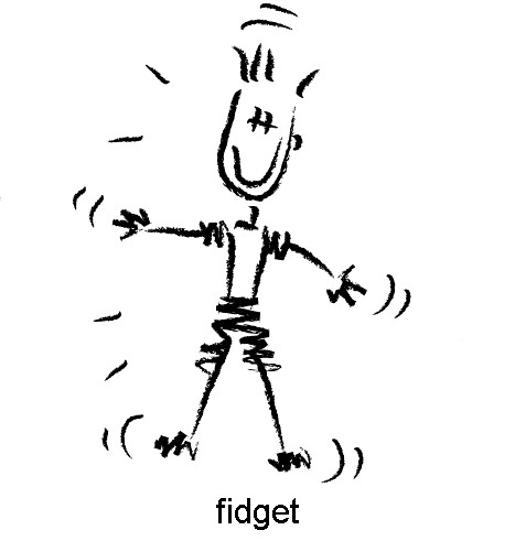 v.坐立不安;煩躁 [To behave or move nervously or restlessly.]