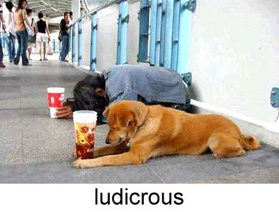 ex. The old woman looked ludicrous in her daughter's clothes.