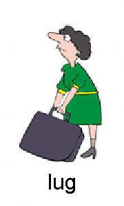 v.使勁的拖拉 [to pull or tug laboriously.]