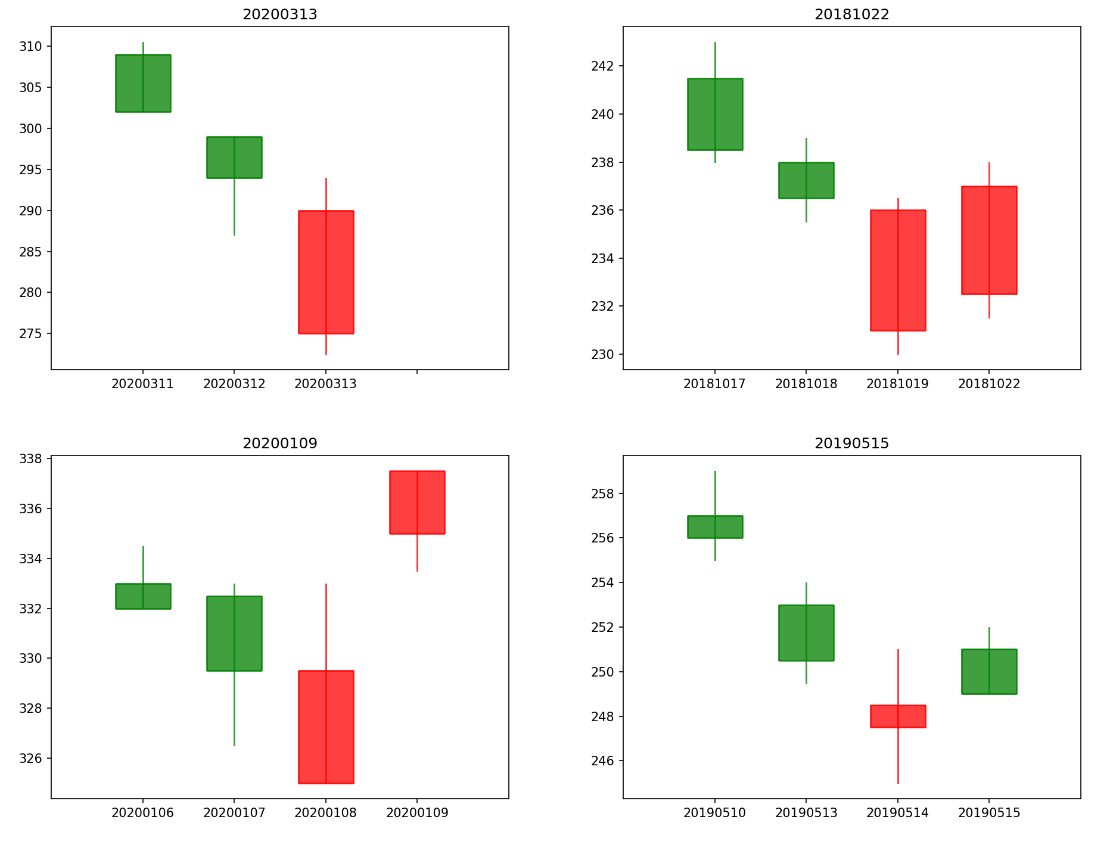 2019-06-05: close = 235.00 2019-06-21: close = 248.50, (days= 16), reward rate >= 0.05 2019-08-23: close = 254.00 2019-09-18: close = 267.00, (days= 26), reward rate >= 0.05 2019-08-30: close = 259.00 2019-09-27: close = 272.00, (days= 28), reward rate >= 0.05 2019-11-04: close = 307.00 2019-12-12: close = 331.50, (days= 38), reward rate >= 0.05 2019-12-11: close = 319.00 2019-12-13: close = 339.00, (days= 2), reward rate >= 0.05 2020-02-13: close = 335.00 NO results yet...