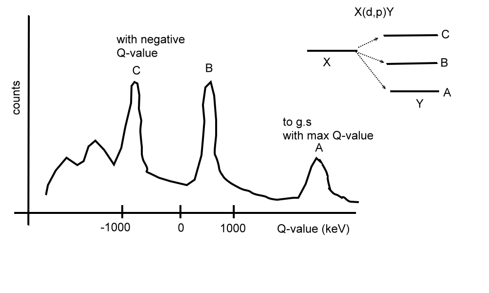 - pickup reaction, such as (p,d), mass of the light particle is double after the reaction.