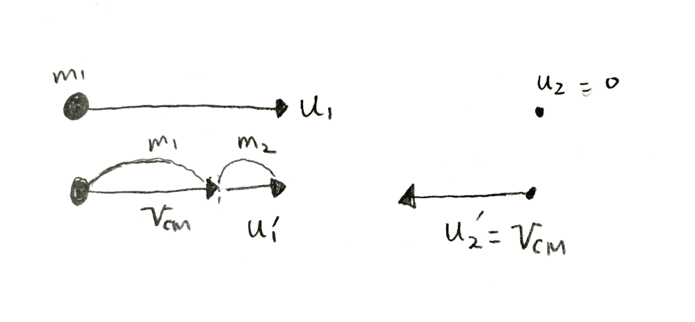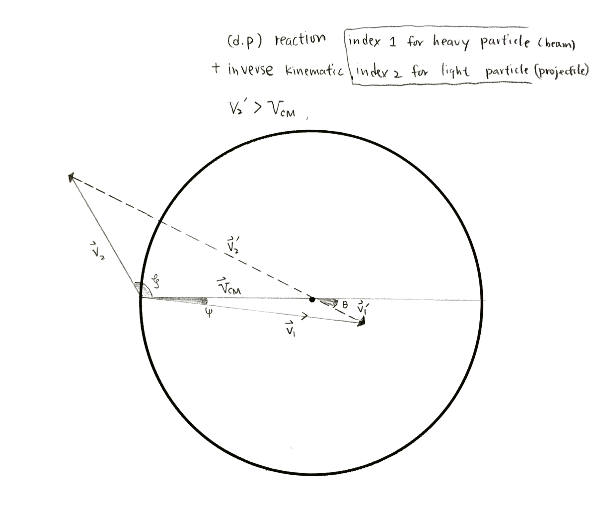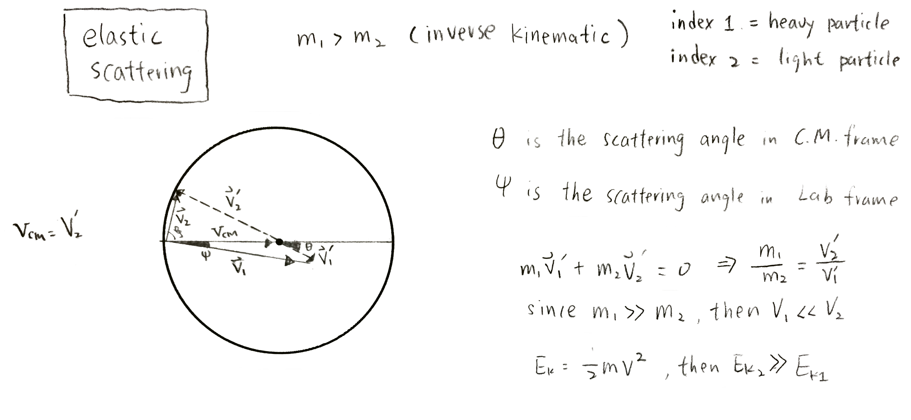 - if the light particle is static before the scattering, then u'light_particle = Vcm; ( we call inverse kinematics).