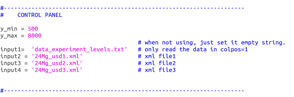 It is a sub branch of the level factory program. It can directly take xxx.xml as your input from shell model calculation ( Dr. Volya's code). You only need to change the control panel. It can take one experiment data set, and up to three xml files. In this code, experiment data is alway at the column 1, and the total number of columns depends on your number of xml files.