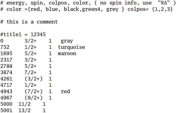 The 'Level Factory' program is very useful when you want to compare level schemes or to present them in several columns. And you do not need to worry about the high level density that causes the presentation is difficult to understand. The program will split and adjust the positions of the text labels and the levels for you.