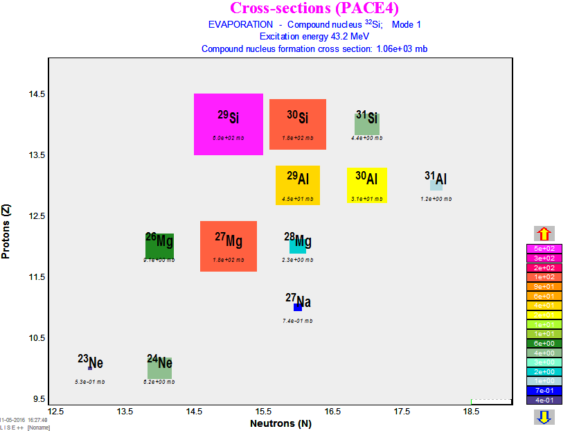 (Figure: PACE4 output for 14C+18O at 30MeV)