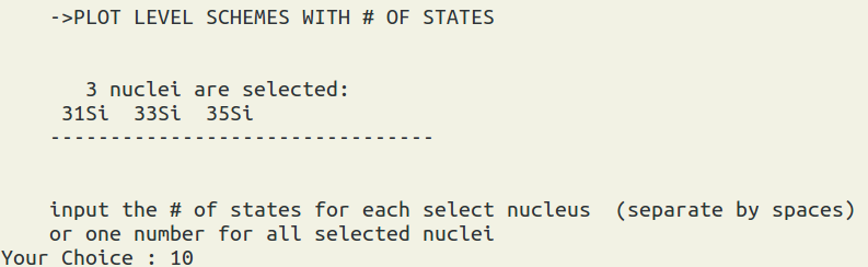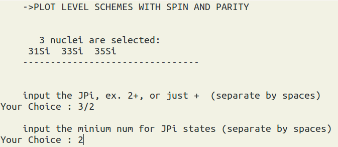 and then type "s" to set odd/even nuclei., and then we type "2" for even.