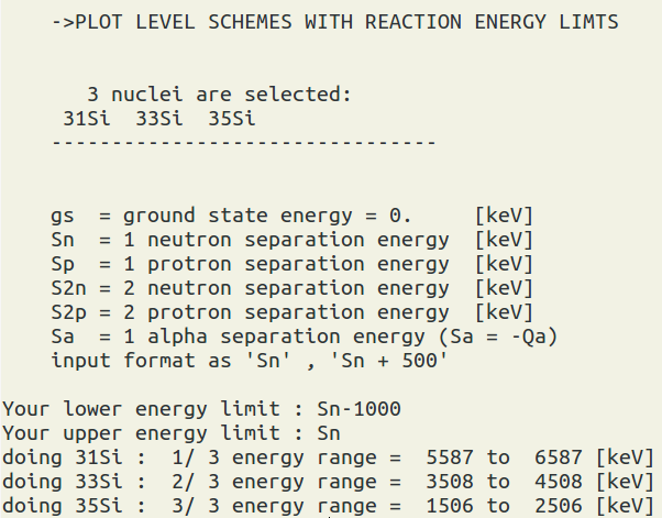 is set to 3000 keV by default, and we will not only plot the levels but also draw the gamma rays by default.