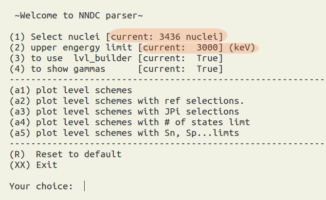 press "x" for going back to the nuclei selection main menu.